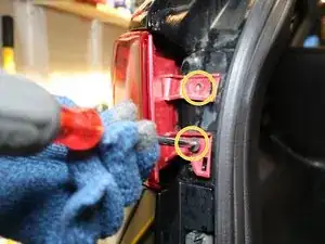 Снимите два винта Phillips №2 12 мм, удерживающие задний фонарь на месте.