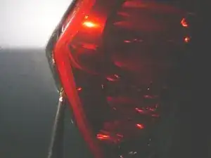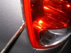 Вставьте какой‑нибудь рычажный инструмент между блоком фонаря и кузовом, чуть ниже складки на кузове, и подденьте в направлении задней части автомобиля. Вы почувствуете/услышите щелчок, когда пластиковый штифт освободится.