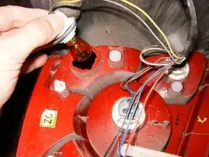 Найдите перегоревшую лампу. В данном случае это был указатель поворота. Поверните патроны ламп против часовой стрелки.