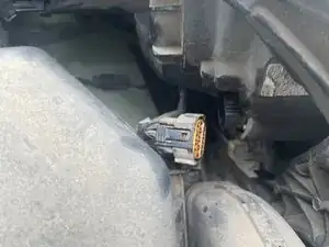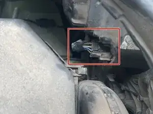 Передней частью автомобиля к задней части фары прикреплён разъём фары.