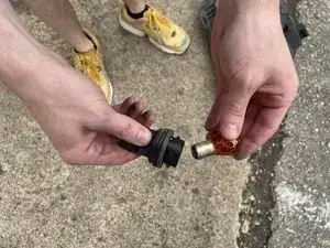 Вытащите держатель лампы из гнезда, повернув его по часовой стрелке и медленно потянув наружу.