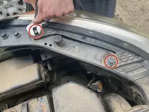 Используйте трещотку с головкой на 10 мм, чтобы открутить два 19-мм шестигранных болта, которые крепят фару к каркасу автомобиля.