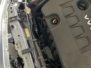 Откройте и сдвиньте фиксатор капота влево, чтобы полностью освободить капот.