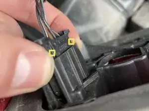Отключите разъем заднего фонаря, сжав обе язычки для освобождения разъема.