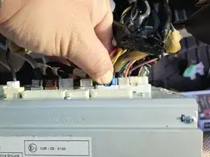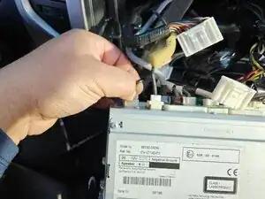 Нажмите на вкладку каждого разъёма и вытяните его из гнезда. Снимите все разъёмы с задней части магнитолы.