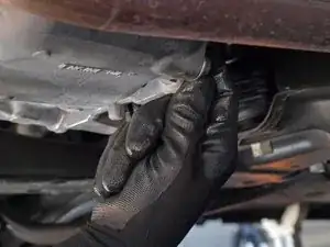 Найдите сливной болт масляного поддона с головкой на 17 мм сзади поддона, обращённый к задней части автомобиля.