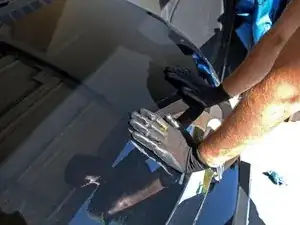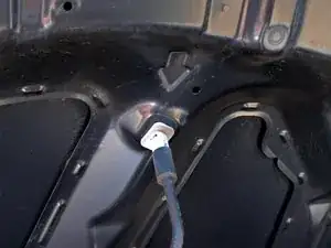 Поднимите капот так, чтобы вы могли опустить упор капота обратно в его посадочное положение.