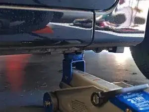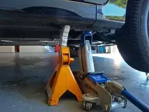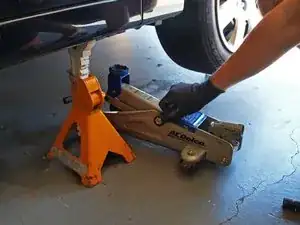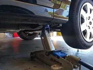 Поднимите пассажирскую сторону автомобиля домкратом, пока не получите достаточно пространства, чтобы удобно работать под автомобилем.