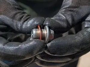 Пока старое масло стекает, протрите сливной болт чистой тряпкой или полотенцем и снимите старую шайбу сливного болта.