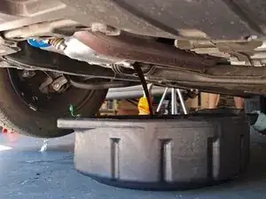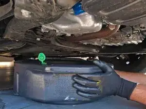 Разместите под масляным поддоном ёмкость для слива масла так, чтобы она собирала стекающее масло.