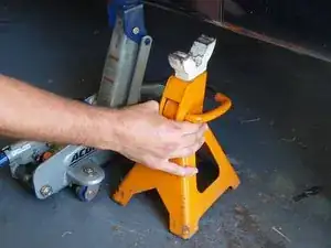 Поднимите автомобиль домкратом настолько, чтобы он больше не опирался на подставку.