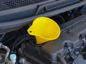 Вставьте в горловину воронку, чтобы предотвратить проливы при добавлении нового масла.