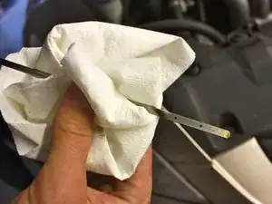 Протрите весь масляный налёт со щупа и вставьте его обратно в отверстие для щупа.