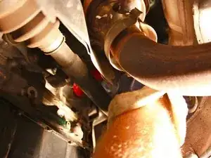 Разместите гидравлический напольный домкрат под автомобилем так, чтобы седло было непосредственно под поперечиной.