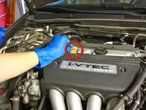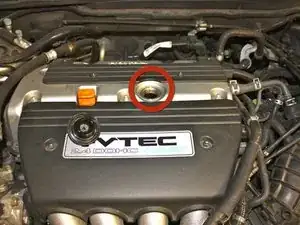 Найдите крышку заливной горловины масла на верхней части двигателя и открутите её.