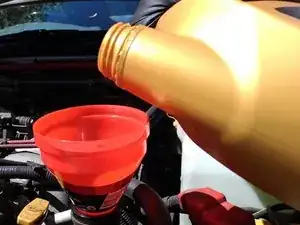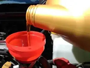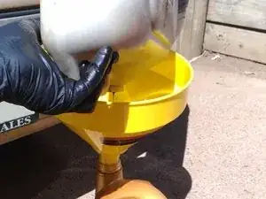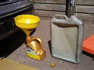 Если вы израсходовали всё масло, то можете использовать пустую бутылку, чтобы собрать отработанное масло