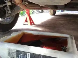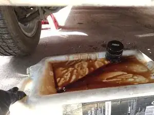 Аккуратно выдвиньте заполненный маслоприёмник из-под автомобиля