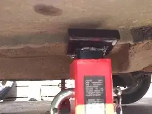 Поднимите переднюю часть автомобиля с центральной точки поддомкрачивания, если у вас гидравлический домкрат
