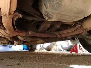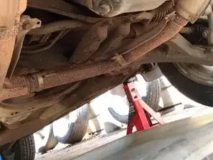 Заберитесь под автомобиль, используя картон или ремонтную подставку