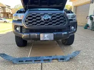 Примечание: Передний спойлер установлен только на комплектации TRD Sport. Если у Вашего автомобиля другая комплектация — пропустите этот шаг.