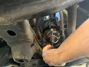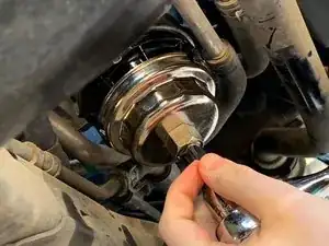 Используйте вороток 3/8" с удлинителем, чтобы открутить крышку корпуса масляного фильтра от корпуса сборки фильтра.