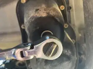 Используйте вороток 3/8" с головкой 14 мм, чтобы открутить сливную пробку масляного поддона.