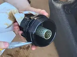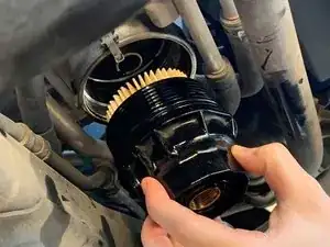 Вручную заверните крышку масляного фильтра на корпус масляного фильтра.