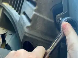 Затем используйте вороток 3/8" с головкой 14 мм, чтобы установить сливную пробку масляного поддона на место и закрутить её.