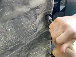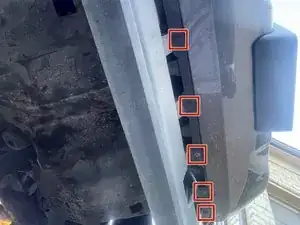 Используйте ключ-головку 10 мм с воротком 3/8", переходником и удлинителем, чтобы открутить все болты переднего спойлера.