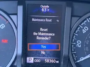 Перейдите к параметрам настроек на экране дисплея. Нажмите кнопку ввода на рулевом колесе, прокрутите вниз до пункта сброса обслуживания и подтвердите выбор.