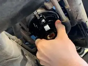 Используйте вороток 1/2", удлинитель и специальный ключ 64 мм для масляного фильтра, чтобы снять корпус масляного фильтра с автомобиля.