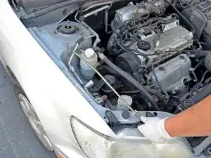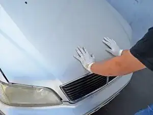 Поддерживая капот одной рукой, другой поместите опору капота обратно в её держатель.