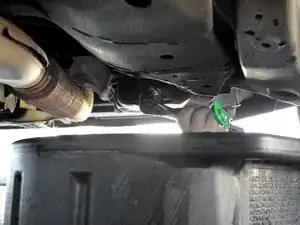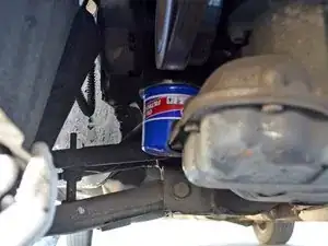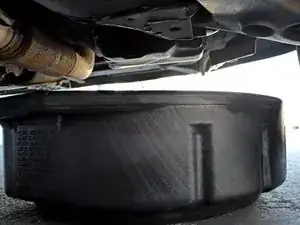 Переместите поддон так, чтобы он улавливал масло, которое выльется при снятии масляного фильтра.