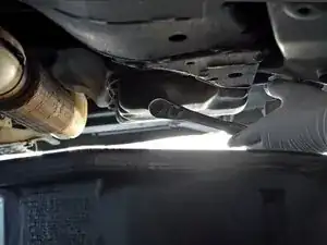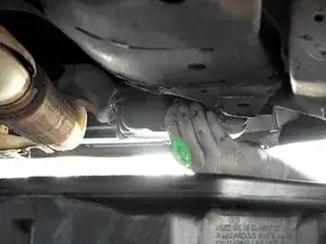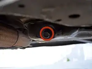 Найдите сливную пробку масла с шестигранником 17 мм. Она расположена со стороны пассажира, направлена назад и находится рядом с выхлопной трубой.