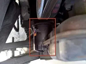 Найдите масляный фильтр. Он расположен со стороны пассажира от масляного поддона и к нему проще всего подойти спереди автомобиля.