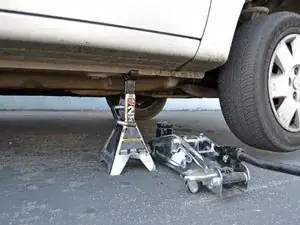 Поднимите автомобиль, чтобы получить возможность под ним расположиться.