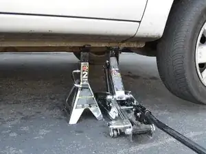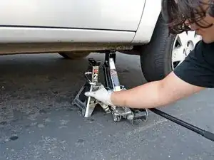 Поднимите автомобиль, чтобы опора домкрата больше не поддерживала автомобиль.