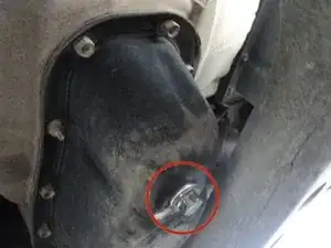 Найдите пробку слива масла. Пробка расположена под передней частью грузовика на днище картера двигателя.