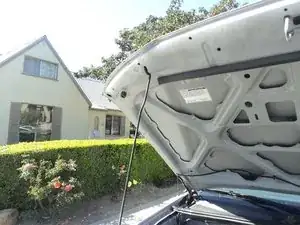 Используйте подпорную штангу капота, чтобы удерживать капот открытым. Штанга расположена вдоль переднего края моторного отсека.