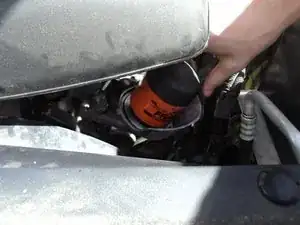 Найдите масляный фильтр в моторном отсеке. Фильтр расположен с нижней правой стороны двигателя.