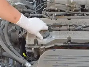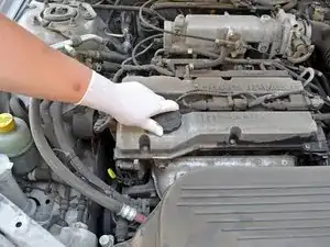 Найдите заливную пробку масла. Она расположена на стороне переднего пассажира на крышке клапанов двигателя.
