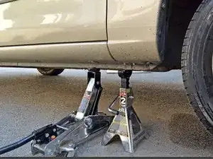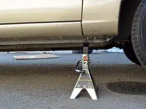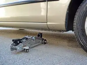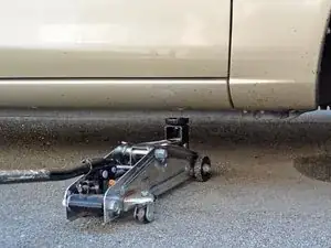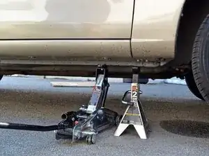 Установите домкрат под подрамник сзади переднего пассажирского колеса. Оставьте достаточно места для установки опоры между домкратом и передним колесом.