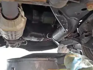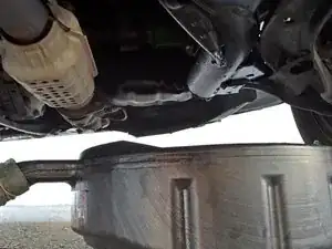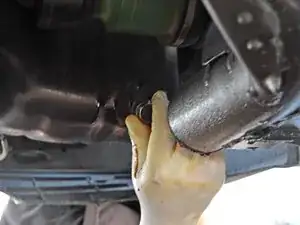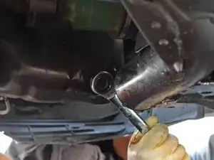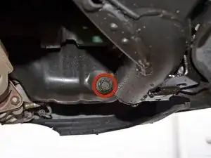 Найдите шестигранный сливной масляный болт на 19 мм. Он расположен на пассажирской стороне автомобиля, направлен в сторону задней части машины.