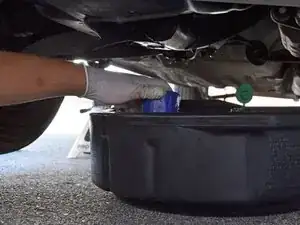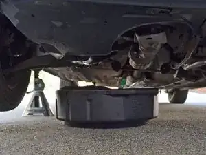 Переместите маслоприёмник так, чтобы он ловил масло, которое может пролиться при снятии масляного фильтра.