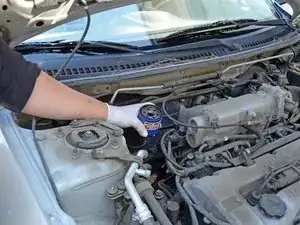 Когда фильтр открутится, извлеките его из моторного отсека открытой стороной вверх, чтобы минимизировать разлив масла.