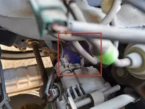 Посмотрите через это пространство — вы увидите масляный фильтр под системой впуска и рядом с генератором.