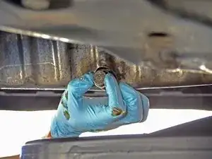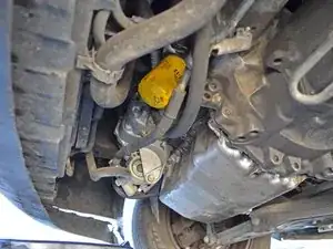 Найдите сливную пробку масляного поддона с шестигранником 19 мм на обратной стороне поддона.