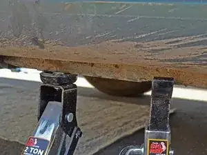 Установите опору под раму рядом с домкратом.