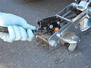 Многие гидравлические домкраты опускаются, если надеть открытый конец ручки на штырь и повернуть против часовой стрелки. Обратитесь к руководству по эксплуатации домкрата, если не знаете, как его опустить.