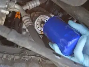 Используйте съёмник для масляных фильтров, чтобы ослабить фильтр, повернув его против часовой стрелки примерно на четверть оборота.